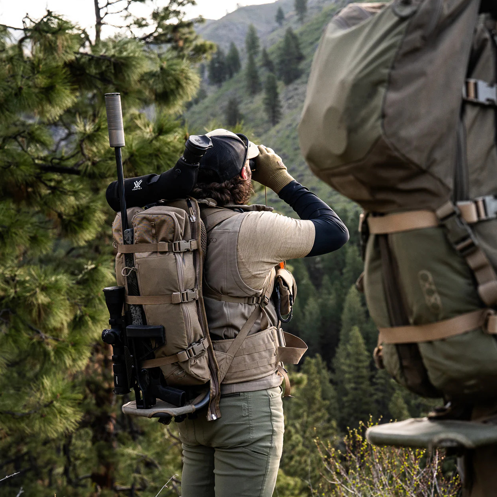 A foundational pack in our modular EMOD™ system—the Batwing Pouch™ is a minimalist, sleek solution to day hunts. This newest iteration of our Batwing comes in at 700CI, with added internal pockets and an exterior zippered stretch pocket for further organization. Run a pair of Batwings as a slim and compact day pack or boost your overall capacity when integrating the Batwings with one of our Vapor series packs or other EMOD™ accessories to the Mainframe. When used as a standalone solution, their design allows them to be zipped apart and laid open or pivoted entirely away from the frame to place and secure meat and gear on the Mainframe.