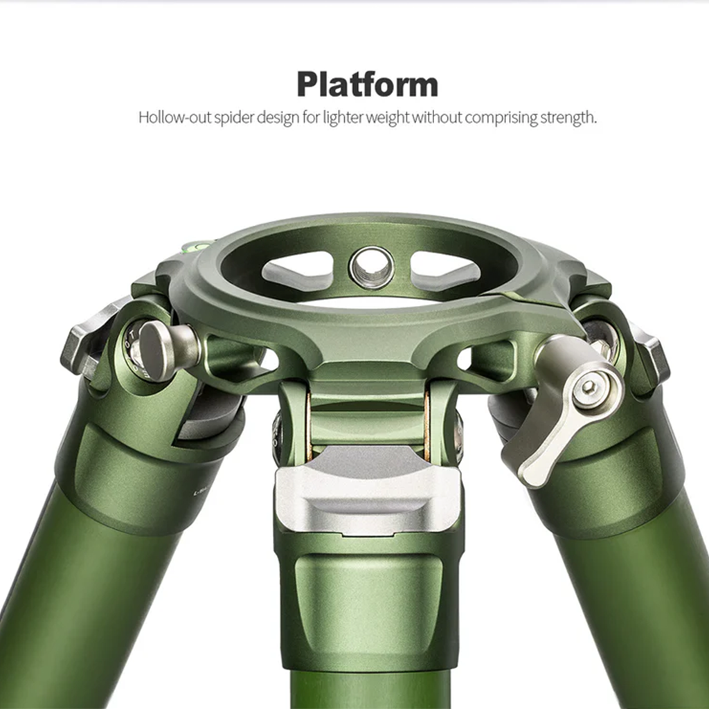 Reach for the top with the Leofoto LM-364CL Summit Series Carbon Fiber Tripod in Olive Green. The olive green color provides a tactical advantage when shooting in natural environments, blending in with surroundings. The 4-section support has 10x carbon fiber tubes that make the tripod a lightweight support while maintaining a heavy max load capacity. The 6061 aluminum parts are CNC machined and hard anodized, creating a durable and scratch resistant surface. The twist leg lock system is quick, only requiring a quarter turn, which enables you to completely extend and collapse the tripod rapidly.